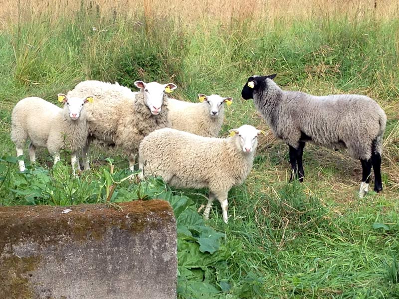Da sind sie endlich, unsere Helden des Alltags! (In der Hoffnung, dass unsere Wiesen „abgemäht“ werden.) Alle sind total lieb und vertragen sich prima. Geht ein Schaf auf der großen Wiese verloren, geht das Geblöke los. Schafe sind absolute Herdentiere, allein sein geht gar nicht. Bis das verloren geglaubte Gruppenmitglied wieder nah dabei ist, wird „gemähät“, was das Zeug hält. Süße Wollnasen!