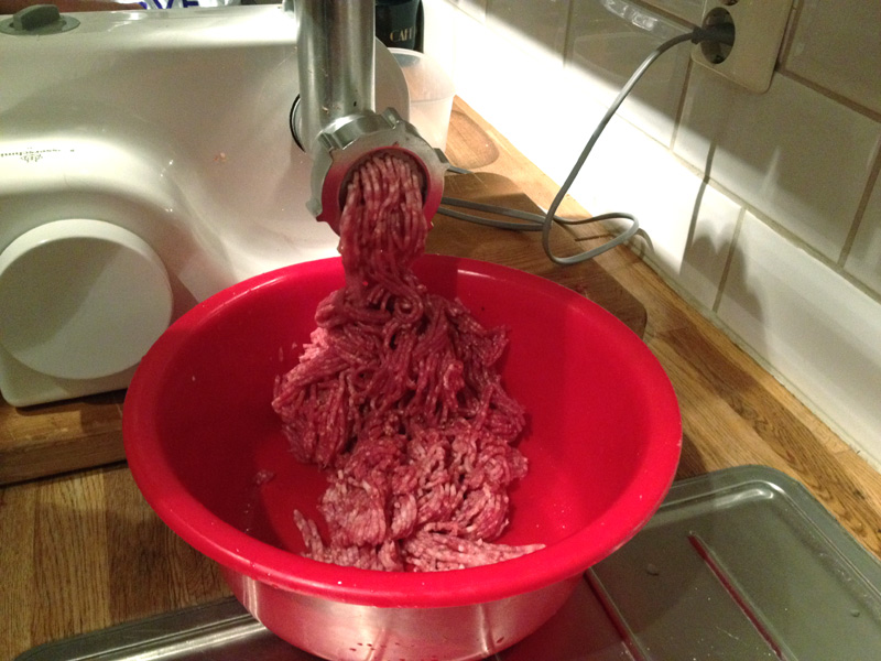 Nun wurde unser Fleischwolf eingeweiht. Schon vor langer Zeit hatten wir den gekauft, aber benutzt worden war er noch nie! Achtung: Das Messer richtig herum einbauen und die Scheibe nicht zu fein wählen!:-)