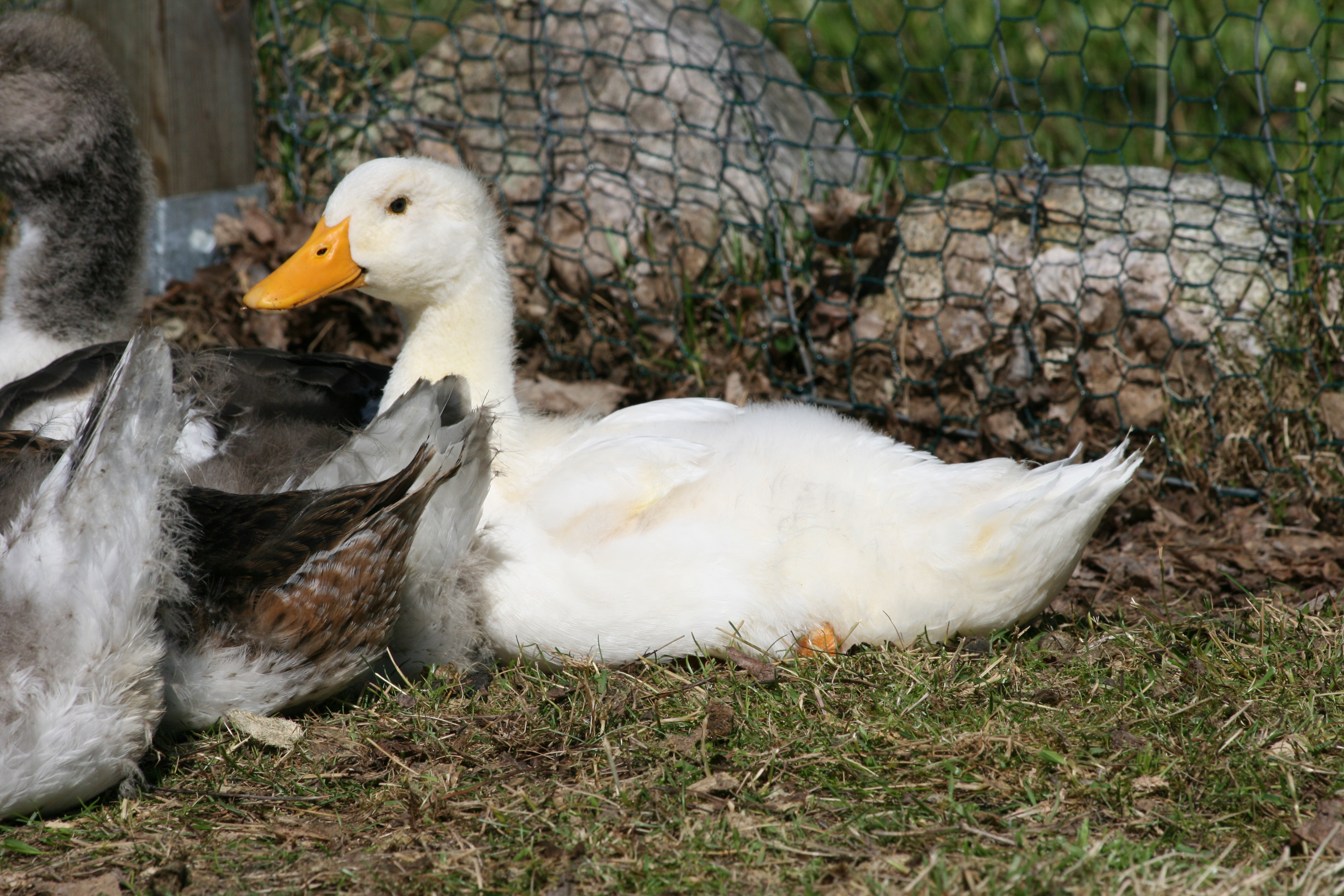 Unsere erste weiße Ente. Sie ist auch die vorwitzigste von den dreien.